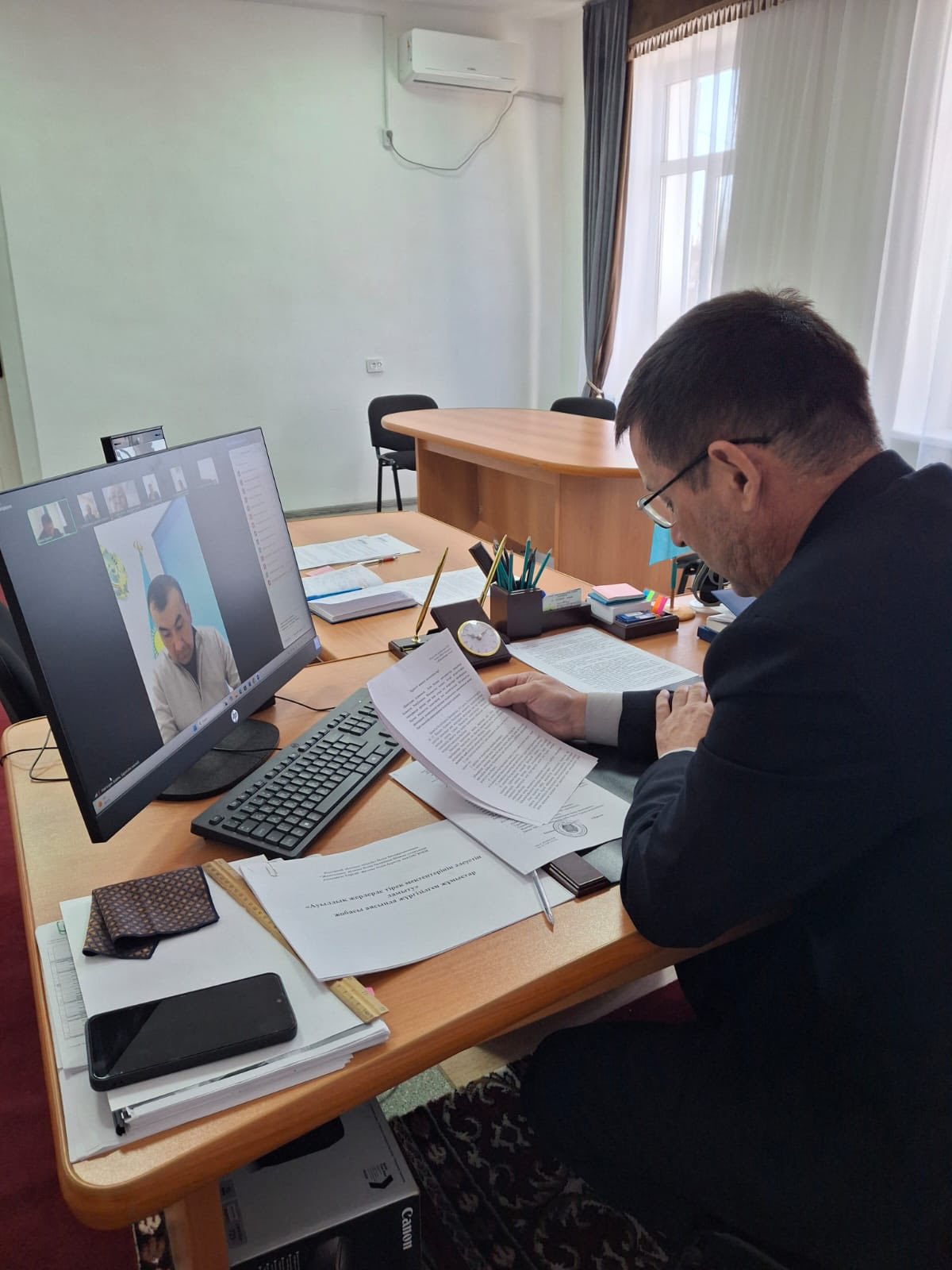 2025 жылғы 22 қазан күні «Жангелдин ауданының білім бөлімі» мемлекеттік мекемесінің басшысы А.Қасымның төрағалығымен онлайн режимінде «Жангелдин ауданының білім бөлімі» мемлекеттік мекемесі Қазақстан Республикасы Мемлекеттік қызмет істері агенттігінің тапсырмасын орындау үшін және алдын алу шаралары шеңберінде барлық мемлекеттік қызметшілер мен ведомстволық бағынысты ұйымдардың қызметкерлері арасында қолданыстағы заңнаманың және Әдеп кодексінің нормаларының талаптарын түсіндірді.