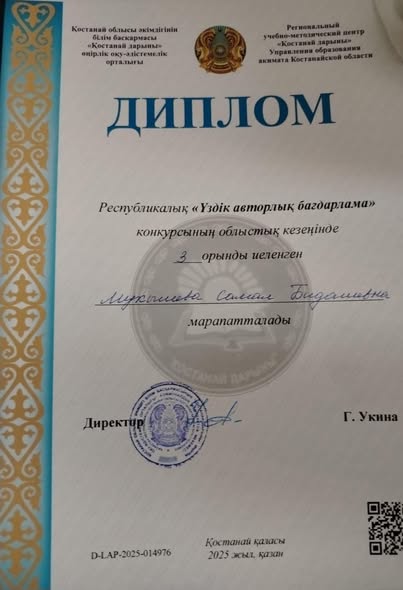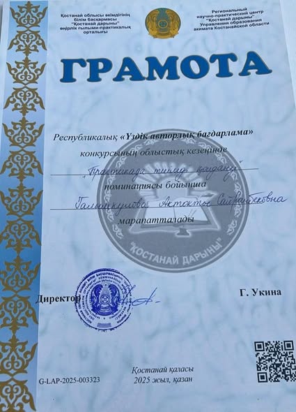 "Бастауыш мектеп, мектепке дейінгі білім" бағыты бойынша - Қ.Жармағанбетов жалпы білім беретін мектебінің бастауыш сынып мұғалімі Муқышева Самал ІІІ орынға ие болды.